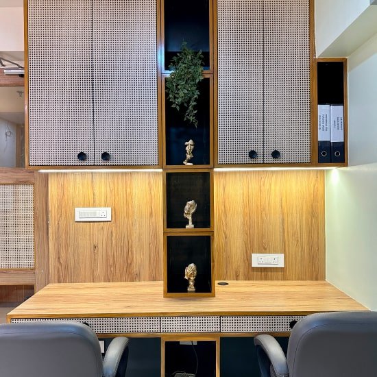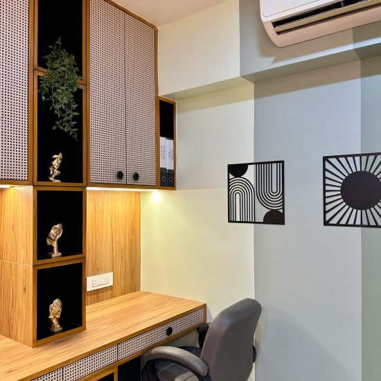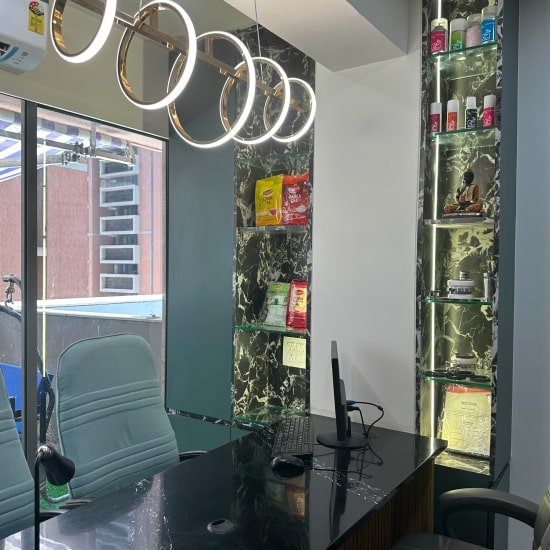Located in the heart of South Bopal, this 450sqft office space seamlessly blends modern aesthetics with functional design. Our approach focused on creating an open, collaborative environment with clean lines and natural light, promoting productivity and creativity. Custom furnishings and strategic layouts ensure both comfort and efficiency, offering an inspiring workspace that reflects the brand’s identity.